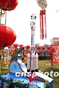 圖:元宵節(jié)上展示神州五號(hào)飛船模型