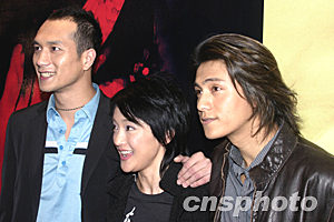 2月5日下午,電影《戀愛中的寶貝》在北京舉行首映新聞發(fā)布會。這部影片融合了中國電影第五代最前衛(wèi)的藝術(shù)思考與風(fēng)格創(chuàng)新。正式放映之前就獲得包括威尼斯電影節(jié)、柏林電影節(jié)、墨爾本電影節(jié)、意大利遠(yuǎn)東電影節(jié)、香港電影節(jié)等各大電影節(jié)的邀請。被稱為中國內(nèi)地2004年最值得期待的第一部國產(chǎn)大片。圖為影片的三名主要演員:黃覺、周迅、陳坤(從左到右)。作者:高遠(yuǎn)
