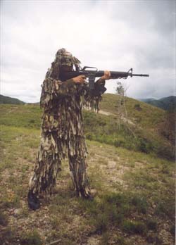 我記得教官在訓練前曾說過:“子彈只找不長眼的人!毕氲竭@里,我采取聲東擊西的戰(zhàn)術(shù),隨手撿起一塊石頭,朝我相反的方向扔去,爾后乘機迅速滾進眼前一條戰(zhàn)壕掩體內(nèi),繼續(xù)前進。當“守敵”再次發(fā)現(xiàn)我的行蹤時,我又用一根樹枝挑起帽子,隱真示假、吸引火力,突然轉(zhuǎn)移。接敵時,我冒著火光沖天的爆炸,時而快速通過獨木橋,時而匍匐穿過鐵絲網(wǎng),時而快速繞過雷場區(qū),終于在“守敵”布置的天羅地網(wǎng)中死里逃生。然而,當我出其不意地繞到“守敵”背后,大聲喊道:“不許動,繳槍不殺!”時,只見那些蒙面“守敵”,紛紛扭過頭,不是舉手投降,而是向我伸出了大拇指。正當我納悶時,他們紛紛卸下面紗,這時我才發(fā)現(xiàn)眼前的“守敵”,竟是與自己朝夕相處的教官、軍曹和勤務(wù)兵。