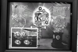 其二,大畫面里每個號球從搖獎機里滾下時,會與前面所出的號球之間有一個碰撞,來回滾動,然后再靜止,而小畫面中的號球滾下時卻顯得相當?shù)钠椒(wěn),沒有碰撞和來回滾動現(xiàn)象。
