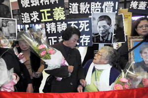 中新網(wǎng)2月12日電 前往日本東京高院聆聽判決的3名臺灣地區(qū)慰安婦11日下午返回臺灣,她們對于日本東京高院判決她們敗訴很不滿,并悲憤的說,她們的官司一定要打到底。