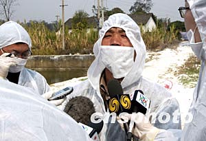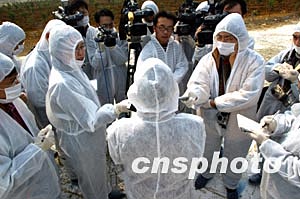 中新社隆安二月十二日電 (記者 趙勝玉)“戴鞋套、穿隔離服、戴手套”,由國(guó)務(wù)院新聞辦組織的中外記者團(tuán)今天首次獲準(zhǔn)進(jìn)入中國(guó)內(nèi)地發(fā)現(xiàn)第一例禽流感的疫點(diǎn)——廣西隆安縣丁當(dāng)鎮(zhèn)丁當(dāng)電灌站采訪。