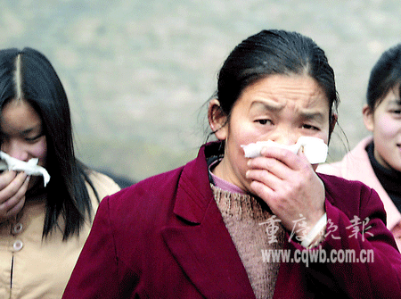 昨日9時(shí)許,重慶天原化工總廠(chǎng)發(fā)生泄漏事故,據(jù)調(diào)查小組分析后認(rèn)為,泄漏的是氯化氫氣體,污染了大水井合作社與雞心石合作社,附近居民先后出現(xiàn)流淚、咳嗽等現(xiàn)象。苗兒石小學(xué)500多名師生當(dāng)時(shí)正在上興趣課,9時(shí)30分左右,一種霧狀刺鼻氣體開(kāi)始在全校彌漫開(kāi)來(lái),并幾乎將全校籠罩,“突然來(lái)的氣體熏得睜不開(kāi)眼了。老師忙喊快走快走!”補(bǔ)課的學(xué)生緊急疏散。該校三年級(jí)一位姓張的小朋友說(shuō),跑出教室才發(fā)現(xiàn),全校的同學(xué)都捂著鼻子往家跑了。
