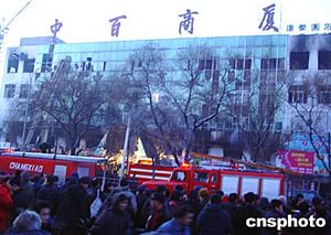 五十三名死者中,男二十九人,女二十四人。據(jù)火災事故現(xiàn)場救援指揮部有關負責人透露,發(fā)生火災的中百商廈為四層建筑,每層面積一千平方米,一、二樓為商場,三樓為浴池,四樓包括舞廳、臺球廳。商廈內有業(yè)戶一百一十一戶,業(yè)主有一百二十人左右。經初步現(xiàn)場勘查,大火是從商廈后側與鍋爐房西側相隔的臨時倉庫燃起的。