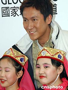 香港藝員馬德鐘二月十七日出席在香港舉行的“馬可波羅現(xiàn)代東游記”攝影展開(kāi)幕式,與表演新疆舞的小朋友一起拍照。作者:錢(qián)興強(qiáng)