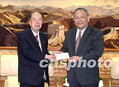 中新社澳門二月二十四日電(記者孫兆震)全國政協(xié)副主席、澳門中華總商會會長馬萬祺24日下午到中央駐澳聯(lián)絡辦,向建設中的北京奧運場館國家游泳中心捐款一百萬港幣。