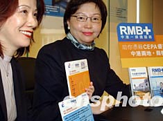 中信嘉華銀行二月二十六日在香港推出優(yōu)越個(gè)人人民幣服務(wù),“RMB+中港一線通服務(wù)”,包括個(gè)人人民幣服務(wù)及與CEPA相關(guān)的商業(yè)服務(wù),專為需要中國有關(guān)的銀行服務(wù)客戶提供增值的財(cái)務(wù)配套支持。圖為該銀行執(zhí)行副總裁林劉德美(右)和高級(jí)副總裁李笑英向傳媒介紹優(yōu)越個(gè)人人民幣系列服務(wù)內(nèi)容。作者:錢興強(qiáng)