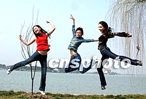 2月26日,來自江蘇、上海、安徽等地的38名優(yōu)秀選手齊聚常熟,進(jìn)行為期三天的2004年國際旅游小姐江蘇賽區(qū)總決賽。圖為參賽選手在尚湖風(fēng)景區(qū)進(jìn)行外拍。作者:蔣振江
