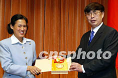 中國人民對(duì)外友好協(xié)會(huì)會(huì)長陳昊蘇,二月二十六日在北京向泰國詩琳通公主授予“人民友好使者”稱號(hào),以褒獎(jiǎng)她多年來為發(fā)展泰中友好關(guān)系作出的突出貢獻(xiàn)。中新社記者:毛建軍