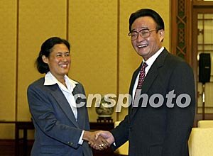 全國人大常委會委員長吳邦國二十七日在北京會見泰國公主詩琳通。中新社記者:滿會喬
