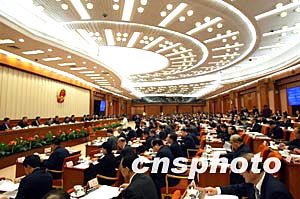 十屆全國(guó)人大常委會(huì)第七次會(huì)議二月二十九日在北京閉幕,會(huì)議表決通過了十屆人大二次會(huì)議議程草案、主席團(tuán)和秘書長(zhǎng)名單草案等。中新社記者:鄭萍萍