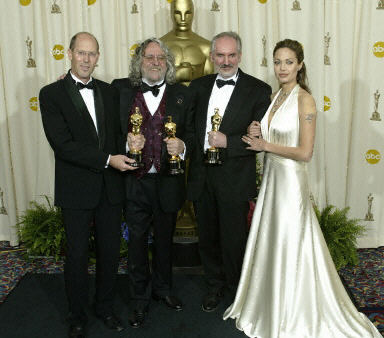 《指環(huán)王3:王者回歸》獲最佳美術(shù)指導(dǎo)獎(jiǎng),安吉麗娜·朱莉?yàn)槿幻佬g(shù)指導(dǎo)頒獎(jiǎng)。