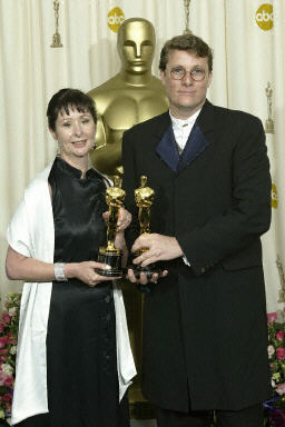 《指環(huán)王3:王者回歸》獲最佳服裝設(shè)計(jì)獎(jiǎng),圖為尼古拉斯和理察德·泰勒上臺(tái)領(lǐng)獎(jiǎng)。