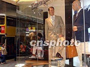 三月九日,在香港舉行的意大利著名男裝品牌ERMEGILdO ZEGNA旗艦店開幕儀式上,模特在商店櫥窗里展示新款服飾。中新社記者:錢興強(qiáng)