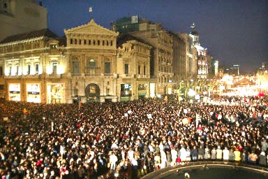 盡管天下著雨,馬德里市中心有8個車道的大路仍然擠滿了人群,西班牙政界高層人士、王室成員和許多外國要人都參加了這次反恐怖示威。