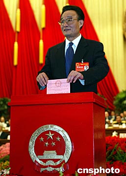 大會由主席團常務主席、執(zhí)行主席吳邦國主持。會議應出席代表2984人,出席代表2903人,缺席81人。出席人數(shù)符合法定人數(shù)。
