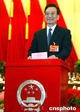 圖:溫家寶投票表決“憲法修正案草案”