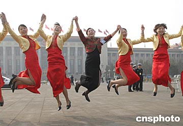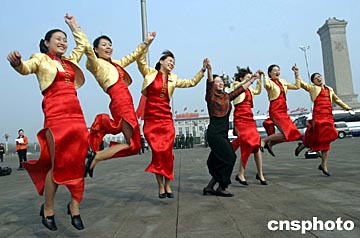 組圖:禮儀小姐快樂"起舞"慶祝"兩會(huì)"閉幕