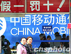 3·15國(guó)際消費(fèi)者權(quán)益保護(hù)日之際,北京王府井大街上一家手機(jī)銷(xiāo)售商打出“假一罰十”的標(biāo)語(yǔ)吸引消費(fèi)者放心購(gòu)買(mǎi)。作者:張雷
