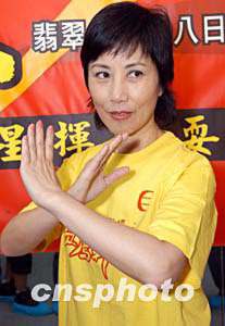 藝員汪明荃3月17日在香港出席古裝武俠劇《血薦軒轅》宣傳活動(dòng),到李暉武術(shù)文化中心接受武術(shù)名師李暉小姐指導(dǎo),汪明荃活學(xué)活用,擺姿勢拍照倍感威武。作者:鄧慶樂