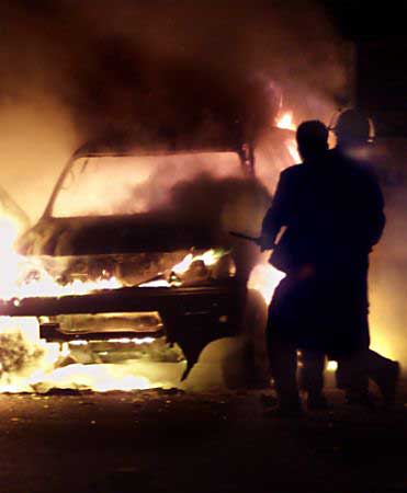 聯(lián)合國(guó)駐科索沃人員的汽車(chē)被焚
