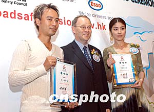 歌星陳慧琳、李克勤3月18日在香港出席《道路安全愿景暨標(biāo)志創(chuàng)作比賽》記者會(huì),陳慧琳、李克勤獲委任為「道路安全愿景大使」,將協(xié)助推廣道路安全信息,運(yùn)輸署署長(zhǎng)霍文向兩位頒發(fā)委任狀。作者:鄧慶樂