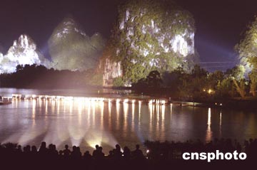 在數(shù)易其稿后,全世界第一部全新概念的“山水實(shí)景演出”《印象·劉三姐》于三月二十日晚在廣西桂林市陽(yáng)朔劉三姐歌圩正式公演,“五年磨一劍”的新版《印象·劉三姐》給近千名中外觀眾帶來(lái)的是動(dòng)人的山歌,夢(mèng)幻的漓江及感懷的印象。
