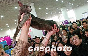 2004年3月21日是世界名貓盛會亮相上海最后一天,當(dāng)天舉行了許多單體項目的比賽,近120多只來自中國各地的名貓角逐“中國貓王”,最終新一屆的“貓王”頭銜被一只金吉拉摘走。中新社傳真 楊磊攝