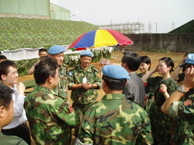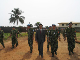 歡迎儀式結(jié)束后,林大使在周紹瑞參謀長及中國維和部隊(duì)各分隊(duì)領(lǐng)導(dǎo)的陪同下,視察了我維和部隊(duì)營地,并看望了各級指戰(zhàn)員。