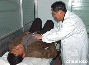 湖北省隨州市疾病控制中心艾滋病防治所的醫(yī)生,三月下旬為接受免費藥物治療的艾滋病患者體檢。中新社記者:曾利明