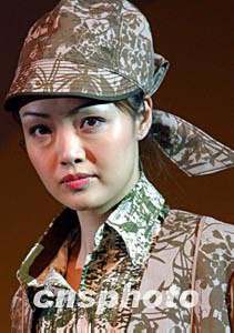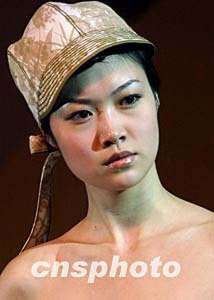 三月二十三日,在香港會展中心開幕的“2004香港國際春季時裝材料展”上,設(shè)計師推出的“迷彩”時裝帽別具特色。中新社傳真 錢興強 攝