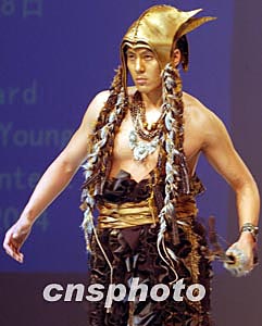 臺(tái)灣青年設(shè)計(jì)師陳琦珍在三月底北京“漢帛獎(jiǎng)”第十二屆國(guó)際青年設(shè)計(jì)師時(shí)裝作品大賽中,以《武魂》主題將T型臺(tái)演繹為深淵中男武士的飄蕩之靈。中新社記者:賈國(guó)榮