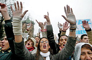 3月12日晚,西班牙4000萬人口中有1140萬人走上全國8000多個(gè)城市的街頭,抗議馬德里發(fā)生的系列恐怖爆炸事件。而歐洲的一些國家如法國、德國均降半旗以示哀悼。這讓人想起了9·11后法國媒體的大字標(biāo)題“我們都是美國人!”同樣,全歐洲也在高呼“我們都是西班牙人!”。