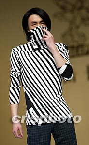 EAGLEPTY休閑裝發(fā)布會(huì)三月三十一日在北京國際時(shí)裝周上舉行,模特展示一款設(shè)計(jì)簡練卻充滿前衛(wèi)風(fēng)格的設(shè)計(jì)。中新社記者:毛建軍