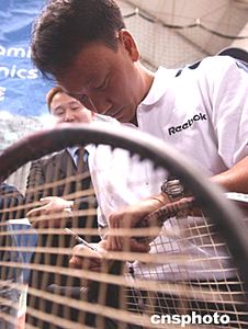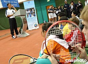 四月三日,美籍華人網(wǎng)球明星張德培應(yīng)北京和睦家醫(yī)院之約,來(lái)到嘉里健身俱樂(lè)部網(wǎng)球中心慈善演講。此次活動(dòng)的門票收入全部捐獻(xiàn)給美國(guó)教育健康基金會(huì),用于幫助中國(guó)貧困地區(qū)醫(yī)療衛(wèi)生事業(yè)和孤殘病患兒童。作者:賈國(guó)榮