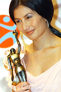 第二十三屆香港電影金像獎頒獎典禮四月四日在香港文化中心舉行,張柏芝榮獲最佳女主角獎。中新社記者:錢興強