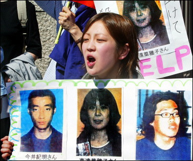 數(shù)百日本民眾在外相官邸集會,要求日本政府從伊拉克撤軍,以解救三名被綁架的人質(zhì)。