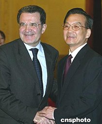 普羅迪表示完全同意溫家寶對歐中關系的評價。他說,目前歐中之間的高層互訪非常頻繁,近期將有六位歐盟委員會成員訪華,這表明歐盟對歐中關系的重視,也反映出歐盟對中國的發(fā)展抱有充分的信心。