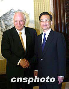 國(guó)務(wù)院總理溫家寶十四日在北京會(huì)見美國(guó)副總統(tǒng)切尼。中新社記者:滿會(huì)喬