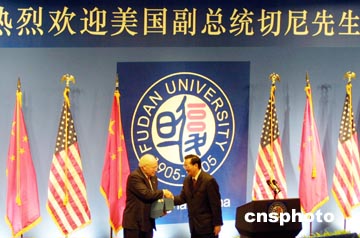 第一次訪問上海的切尼被邀請(qǐng)?jiān)趶?fù)旦大學(xué)發(fā)表演講。他說,中國(guó)在近幾十年來(lái)取得了非常矚目的成就。雖然五十年前,美中兩國(guó)曾是敵人,當(dāng)時(shí)彼此都視對(duì)方為重大的威脅。但他認(rèn)為這種情況已經(jīng)發(fā)生變化,因?yàn)槿缃褚紤]到雙方的共同利益,要在世界發(fā)展和平與穩(wěn)定,美中在很多問題上都共同合作。