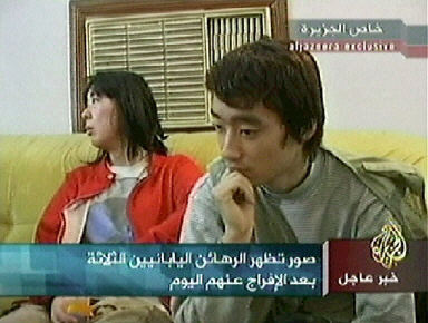 三人的平安獲釋令日本政府方面終于松了一口氣,外務(wù)省立即通知舉行緊急記者會見。但他們依然無法完全定心,因為就在昨晚,又有兩名日本人在巴格達郊外被一群身份不明的武裝分子帶走,至今依然不知下落。