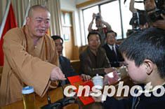 四月十七日,嵩山少林寺方丈釋永信大和尚在登封市向孤兒發(fā)放救助款,此舉標志著中國嵩山少林寺和河南省慈善總會聯(lián)合開展的“千名孤兒救助計劃”正式啟動!扒聝壕戎媱潯笔怯舍陨缴倭炙屡c河南慈善總會共同發(fā)起組織的一項針對貧困孤兒的長期救助計劃。該項目在河南省內(nèi)選出符合條件的一千名孤兒作為長期救助對象,并從救助的孤兒中挑選五十至一百名孤兒由非營利慈善機構(gòu)“少林慈幼院”收養(yǎng),對他們進行系統(tǒng)教育和培養(yǎng)。中新社記者:慎重