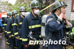重慶市天原化工總廠門外整裝待發(fā)的消防隊(duì)員。十五日晚,該廠發(fā)生氯氣泄漏事故,有十五萬人撤離。作者:鄒輝