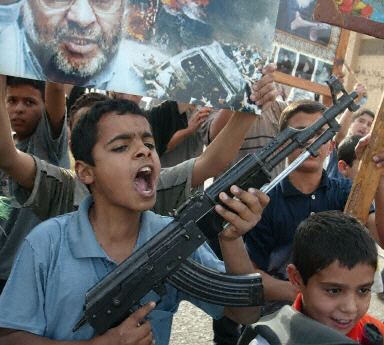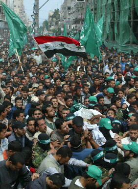 3月22日,近萬名哈馬斯的支持者和巴民眾涌上加沙街頭,為遭以軍暗殺的“哈馬斯”精神領袖亞辛舉行葬禮,更抗議以色列不光彩的暗殺。28天后,巴勒斯坦各武裝派別的支持者們又來給蘭提斯送行。當他們擁著蘭提斯的尸體,鳴著槍從加沙師法醫(yī)院走向阿爾納斯郊區(qū),他們心中充斥的是憂傷?是憤怒?是恐懼?還是茫然?