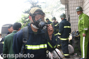 今天下午,重慶市對天原化工總廠殘存有液態(tài)氯的三個貯氣罐進行了人工引爆,三個貯氣罐目前已被摧毀,險情被排除。十五日晚重慶天原化工總廠發(fā)生氯氣泄漏爆炸事件,十五萬群眾被疏散。圖為進入事故現(xiàn)場的消防員全副武裝。作者:鄒輝