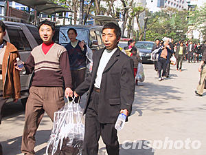 四月十八日下午四點多,被臨時安置在重慶市第十八中學(xué)的群眾得到"可以回家"通知,大家歸心似箭。圖為提著自己衣物的兄弟倆笑逐顏開地走向該學(xué)校大門。作者:郭晉嘉
