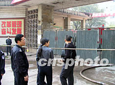 記者再次來到事故發(fā)生地——重慶天原化工廠大門前,昨天記者在這里見證了一場驚心動(dòng)魄的戰(zhàn)斗,經(jīng)過六小時(shí)緊張的爆破和搶險(xiǎn),重慶市終于解除了威脅市民六十多個(gè)小時(shí)的氯氣警報(bào)。