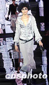 著名意大利設(shè)計師Giorgio Armani近日訪港,于4月20日晚,在香港匯豐銀行總部舉行“2004-2005秋冬男女時裝展”,模特演繹非常風格的男女系列時裝,展現(xiàn)Armani設(shè)計精粹。作者:洪少葵