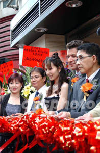 在國內(nèi)擁有三十間珠寶專門店的『美億珠寶』,擴(kuò)充香港區(qū)業(yè)務(wù)發(fā)展,4月23日舉行新店開幕儀式。圖為主禮嘉賓主持剪彩儀式。作者:洪少葵