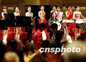 晚宴結束時,前來參加年會的美國前總統(tǒng)喬治·布什,走上主席臺與民樂演奏家們進行切磋。這位曾經(jīng)長期擔任駐中國大使的老政治家,透露出對中國民間音樂的熱愛。